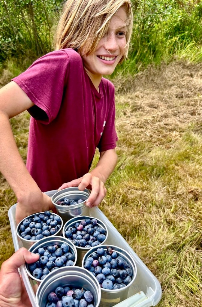 L to R, row 4: Blueberry picking in the secret patch of hundreds of bushes a few minutes north of us, owned and revealed to us by the same neighbor-friend who loaned me the ladders I needed to paint the house and the jackhammer I needed to create the jackhammer garden. And stepped in to sort us out when our water heater broke messily in August – really the best I Know a Guy type guy imaginable * Eliot at the Connecticut river, releasing a great big bass he caught * walking the fields at dusk in late summer * grey tree frog who had somehow come right in and settled on the chair beside me without my noticing as I was sitting in the garage-lounge looking out at the garden on the third anniversary of my dear friend Kate‘s death They are well-camouflaged and nocturnal and hang out mostly, as the name suggests, on trees, so the visit was unusual and I had to get E to come confirm this guy’s identity * cake I made for a summertime birthday * Jordan and Jeremiah on the rail trail