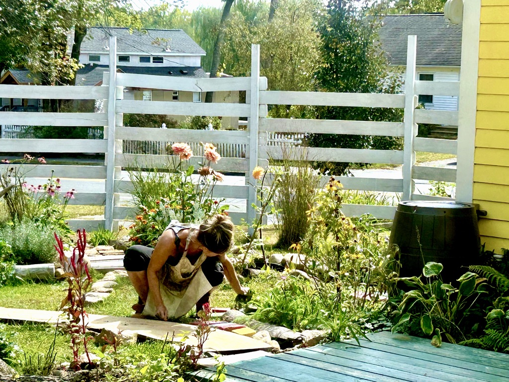 L to R, row 5: Melty sunset from the upstairs window * J & E in the waves at the Jersey shore (just out of frame, one million cousins) * aerial view (sticking my head out the bathroom window) of the jackhammer garden in July * close up asters going bonkers in August * Eliot amid the ginger on the farm behind our house. I feel like this is giving the impression that we’re somewhere very rural and remote, if you’ve never been here. To clarify: we live in a super (5x) college town, across the street from an apartment complex and a longish walk or very short drive from good music or noodles or coffee. It’s also a charming spot in a beautiful river valley though and we do see a lot of cool animals * campfire